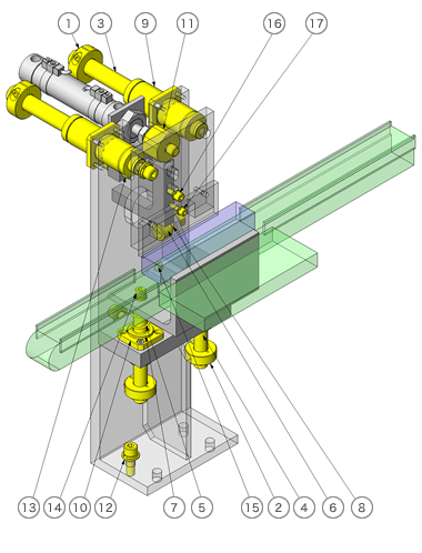 使用凸輪機(jī)構(gòu),通過1個氣缸即可完成兩個操作,即開關(guān)卷簾門和操作推桿