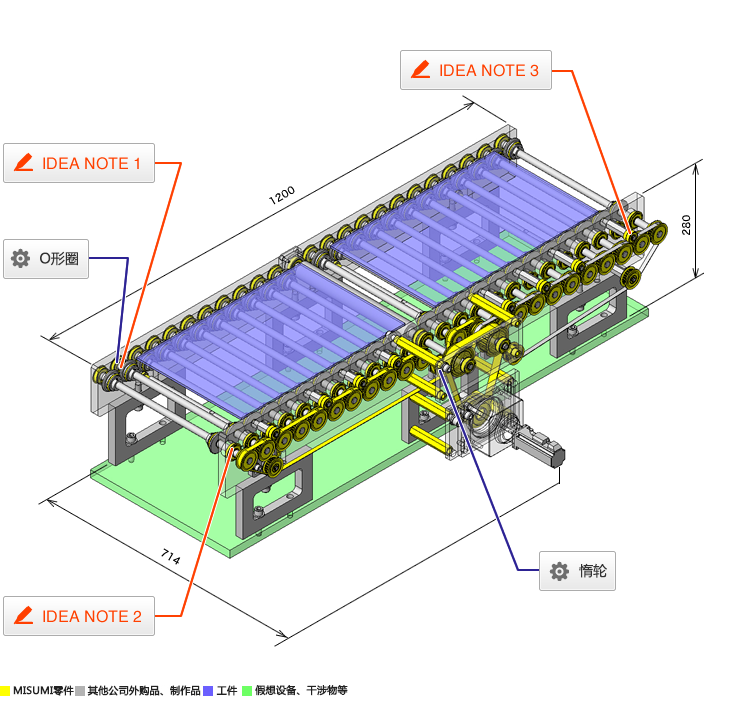 使用了O形圈的滾輪傳送