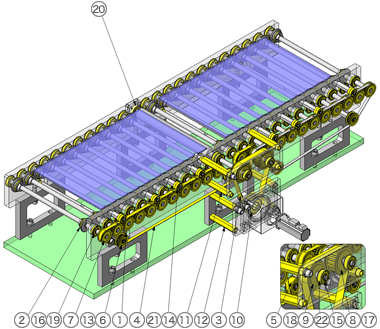 裝有O形圈的滾輪帶肩,通過肩對工件寬度進行導向
