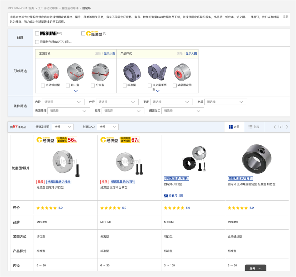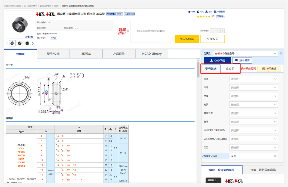 具體商品型號可以在詳情頁面通過型號篩選或者追加工來生成商品