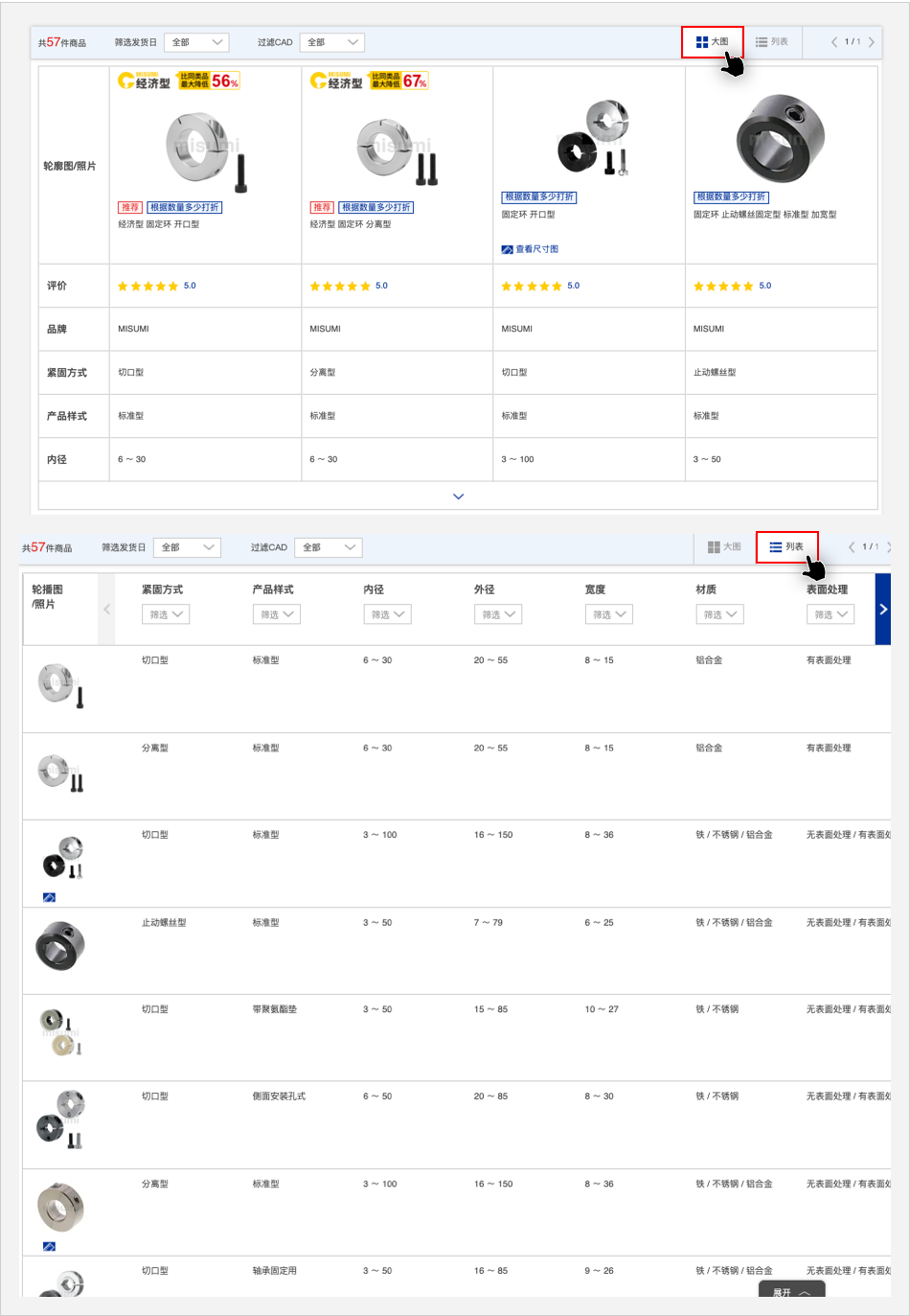 点击图中所示图标,可更换商品显示方式。