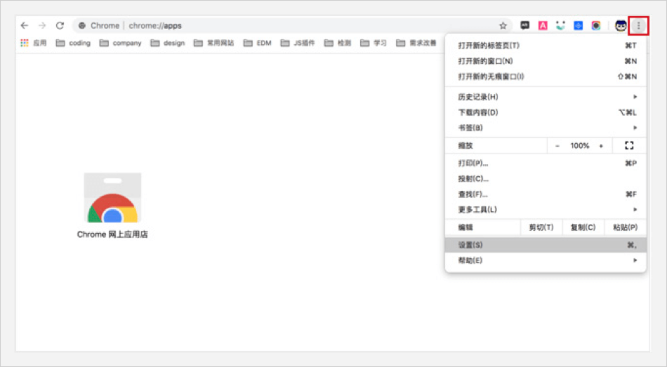 打開Chrome 瀏覽器,點擊右上角設置icon圖標,選擇【設置】。