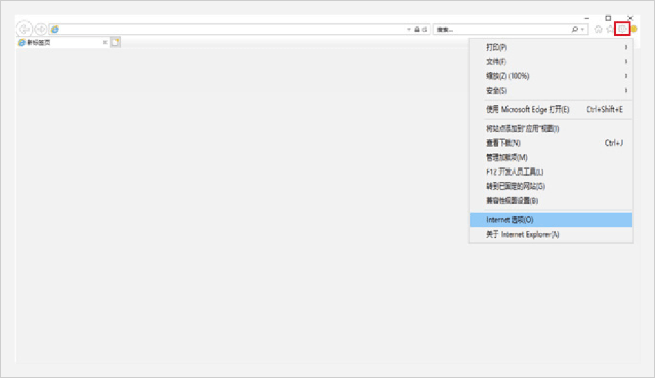 打開Internet Explorer 瀏覽器,點擊右上角【工具】圖標,選擇【Internet 選項】