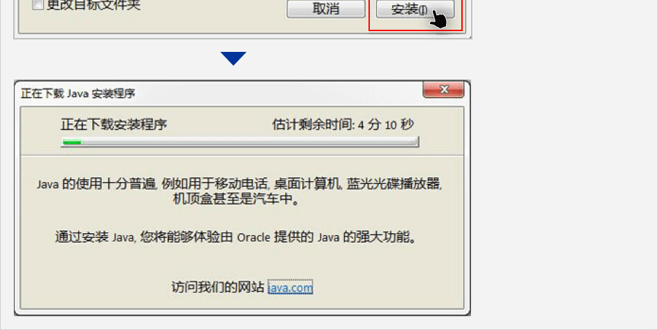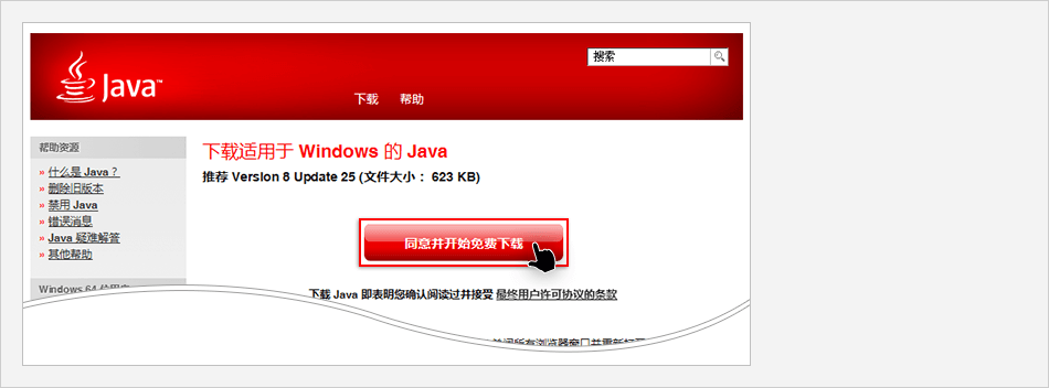 點擊Java網(wǎng)站的【下載免費Java】按鈕