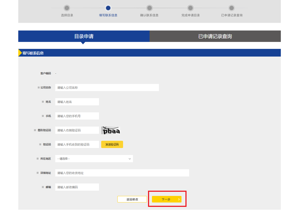 4.填寫聯(lián)系信息。填寫完畢后,選擇【下一步】。
