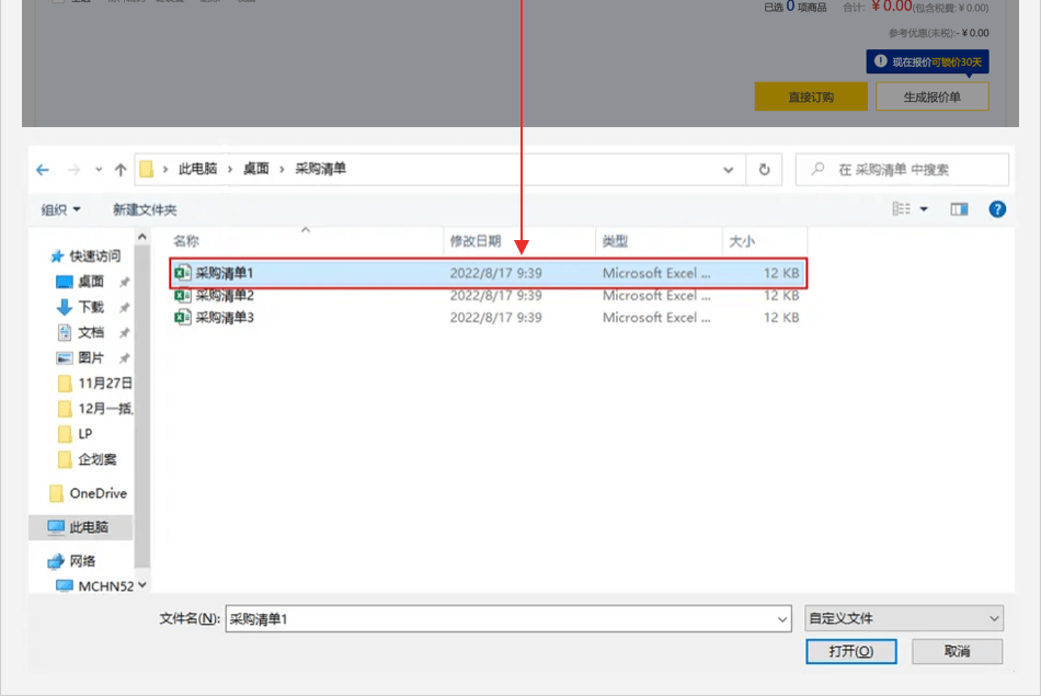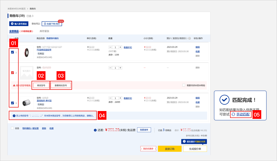 畫面跳轉(zhuǎn)至購物車頁面,并自動彈出【批量下單/詢價】彈窗。