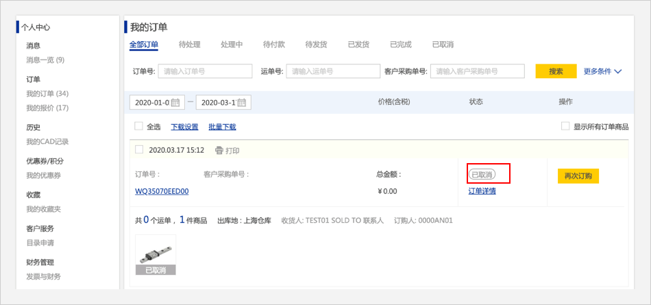 商品取消后,頁面顯示該商品狀態(tài)標(biāo)簽【已取消】。