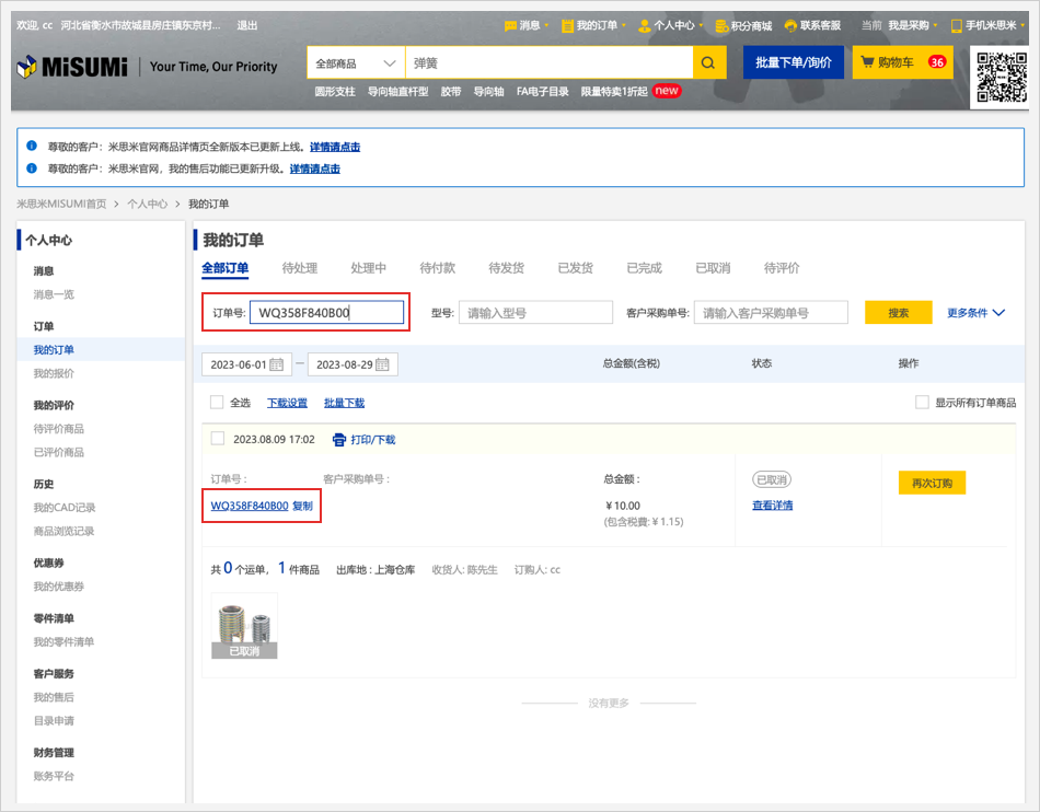 入口一:在官網(wǎng)首頁頂部,點擊“我的訂單”即可進入我的訂單檢索界面。