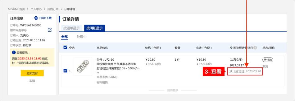 - 如何查看預(yù)計(jì)到貨日