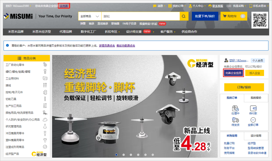 完善企業(yè)信息:您的企業(yè)未曾在米思米注冊(cè)成為企業(yè)用戶,請(qǐng)選擇該方式。