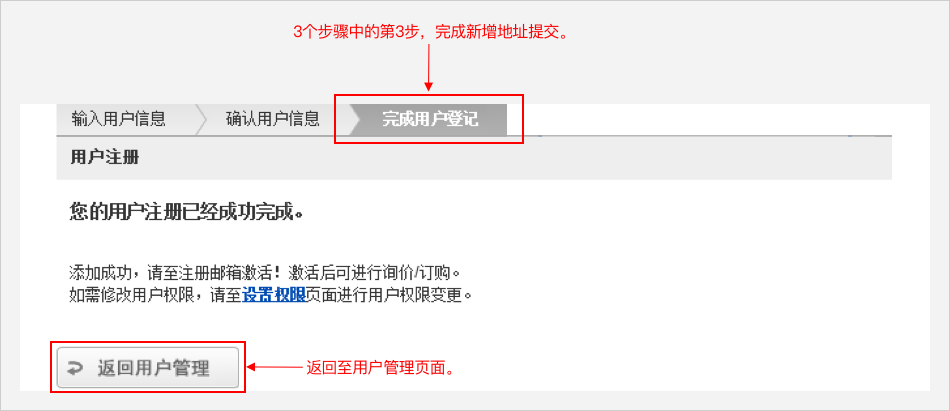 新用户只有报价权限,如要申请订购权限,请点击,"设置权限页面设定相应性订购权限"