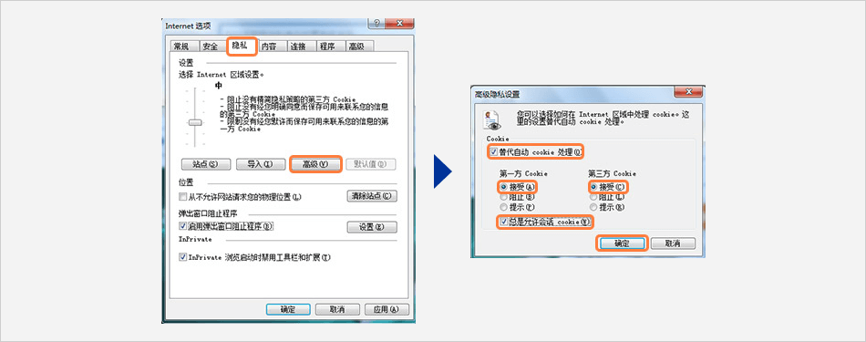 請在您的瀏覽器中按以下步驟進行設(shè)定。(示例畫面為InternetExplorer11)