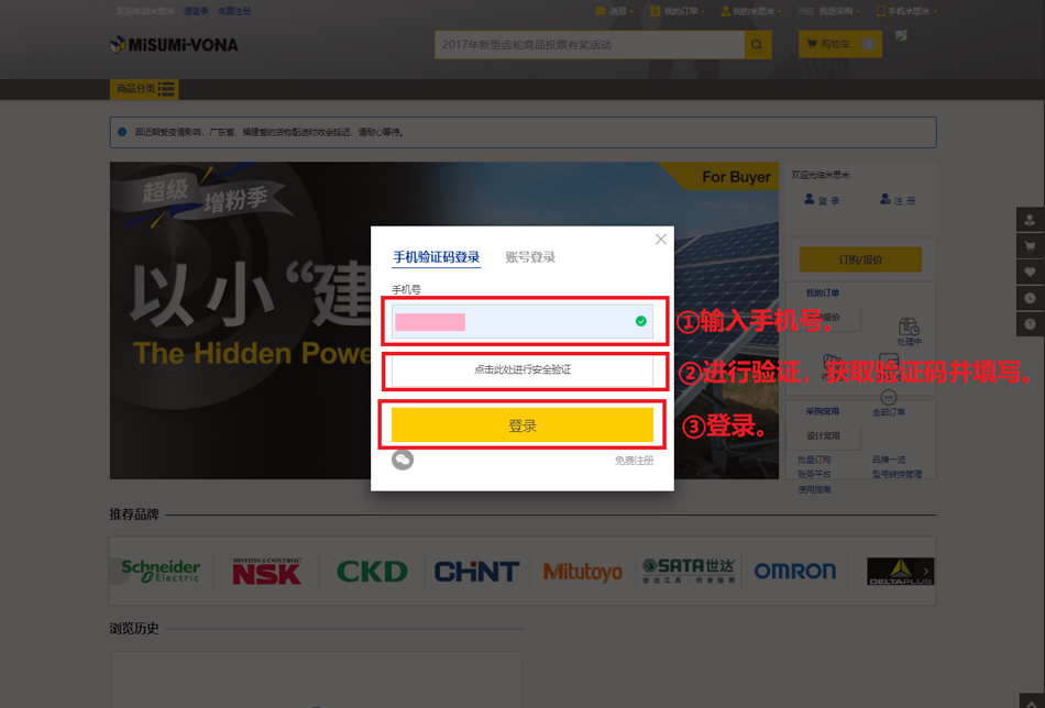 1.點(diǎn)擊米思米首頁(yè)【請(qǐng)登錄】或【登錄】。