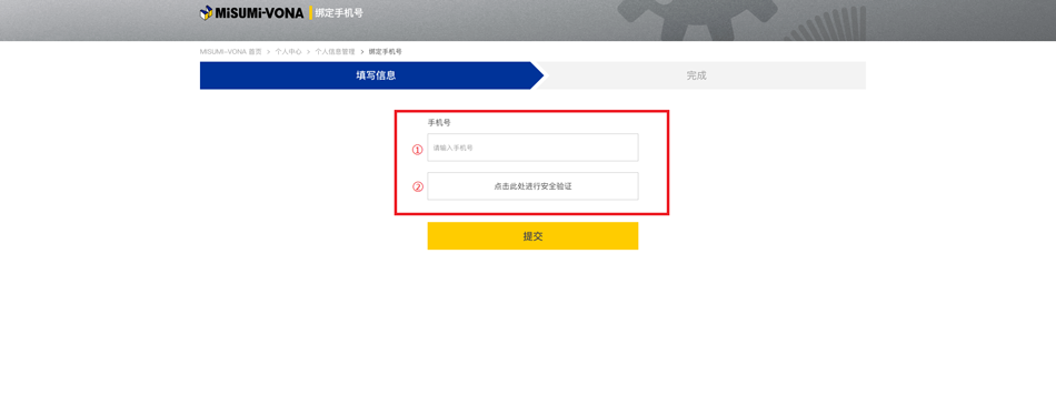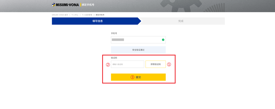 入口二:老用戶登錄米思米官網(wǎng)后,點擊米思米官網(wǎng)首頁【驗證手機號碼】即可進入綁定界面。