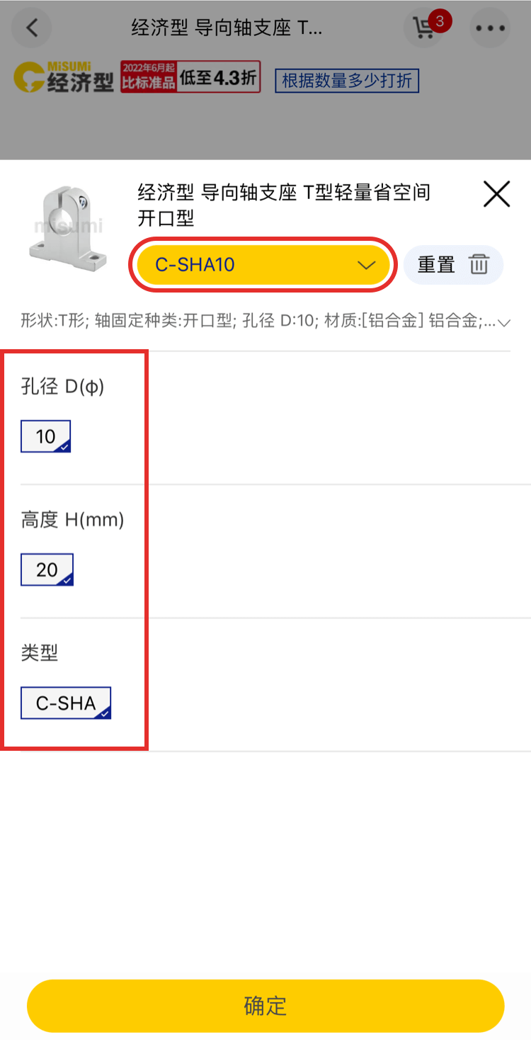 ※「確認(rèn)價格/發(fā)貨日/數(shù)量折扣」在型號確定后顯示出來。