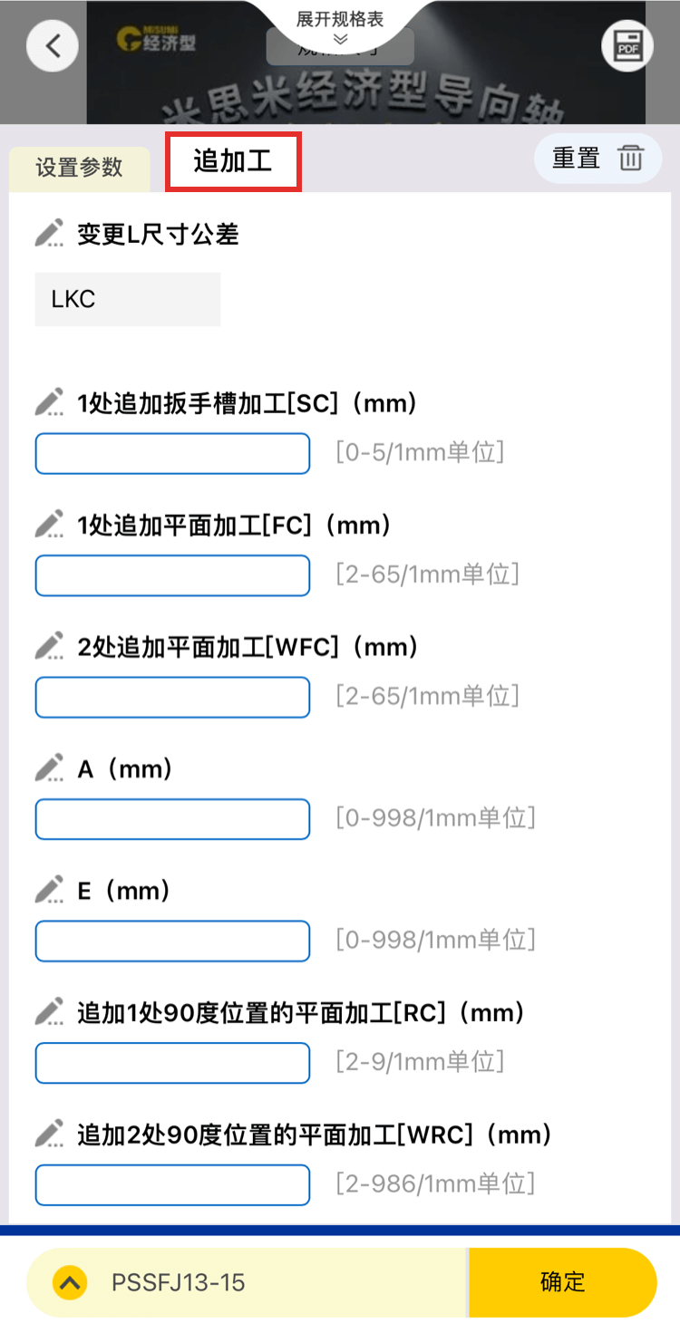 左側(cè)及頭部有【追加工】選項(xiàng)框,根據(jù)商品屬性追加參數(shù)。