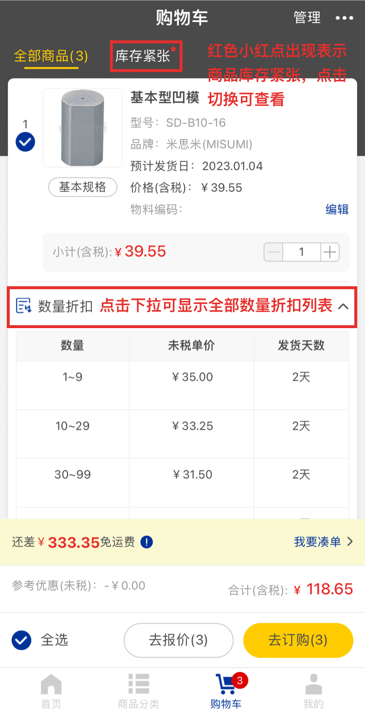 ※圖例中所顯示的價格信息均為樣例,實際商品價格請在米思米網(wǎng)站上再次確認