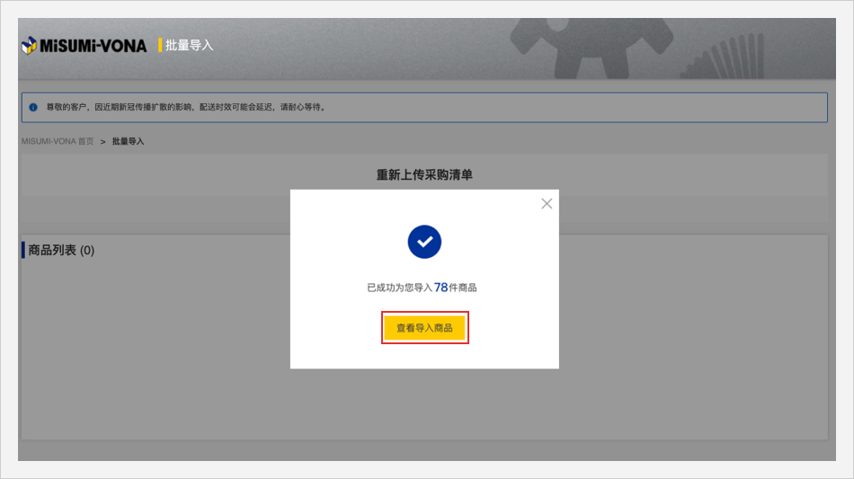 導(dǎo)入商品數(shù)量情況提示且點(diǎn)擊【查看導(dǎo)入商品】查看導(dǎo)入結(jié)果