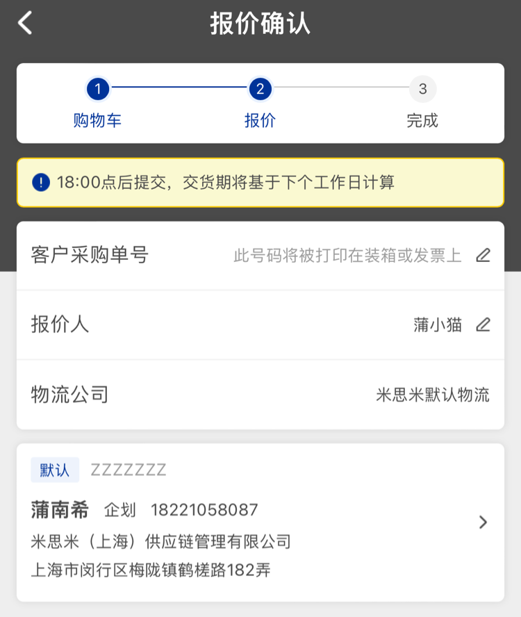 點擊「生成報價單」,可對選中的商品進行報價,確認價格和交期后再訂購。