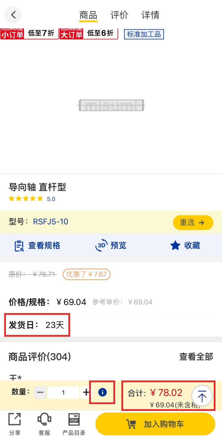 ※圖例中所顯示的價格信息均為樣例,實際商品價格請在米思米網(wǎng)站上再次確認。