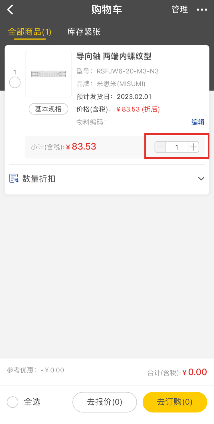 ※「確認價格/發(fā)貨日/數(shù)量折扣」在型號確認后顯示出來。