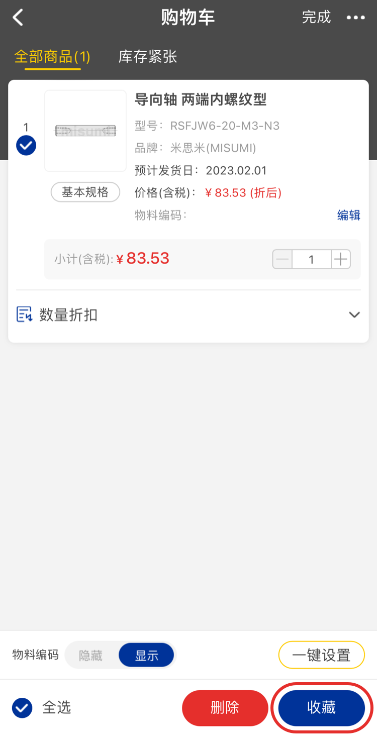 您可將經(jīng)常使用的商品添加到我的收藏夾,下次報價或訂購時,在零件表中就能查到這些型號。