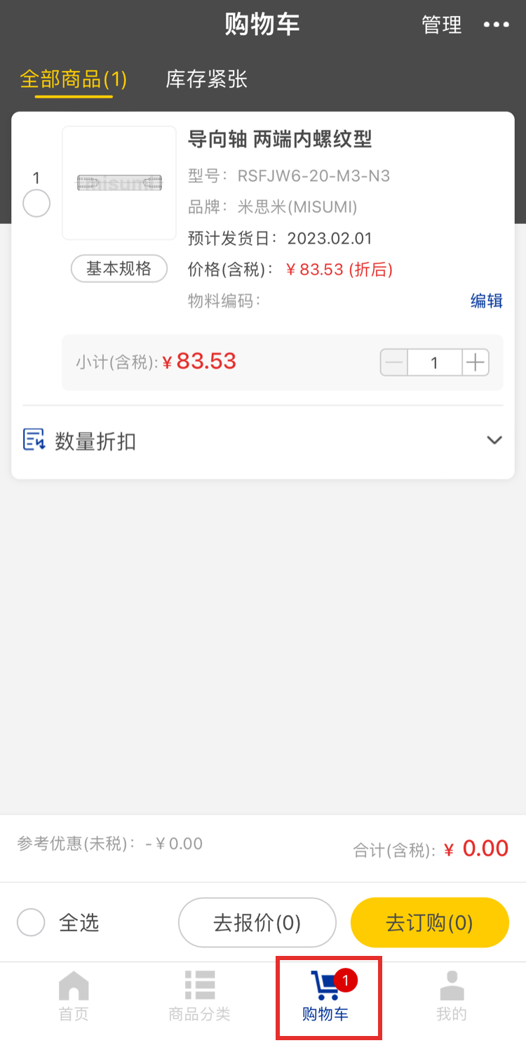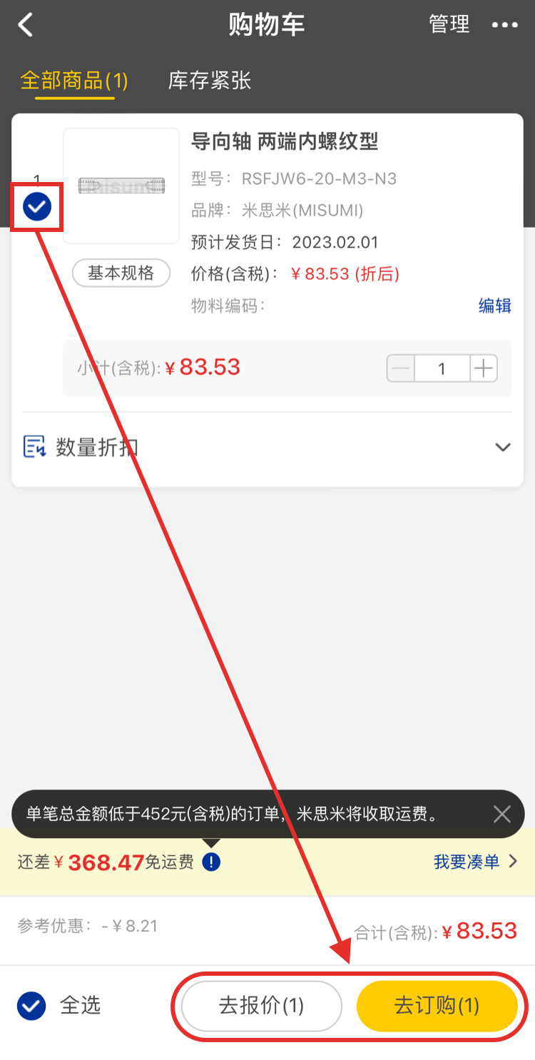 點擊「直接訂購」,可直接查看商品價格和交期,確認沒有問題后可訂購商品。