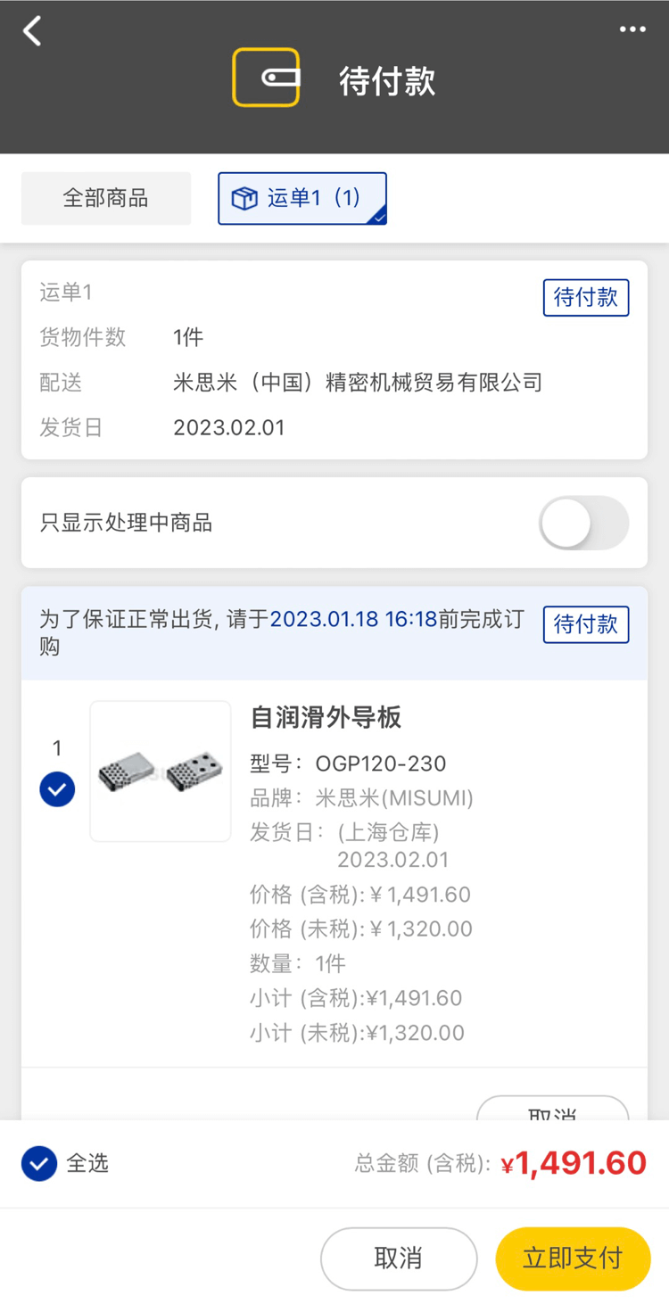 這部分商品,米思米確認后會通過郵件聯(lián)絡,您可以點擊官網首頁頂部點擊【消息】查看詳情。