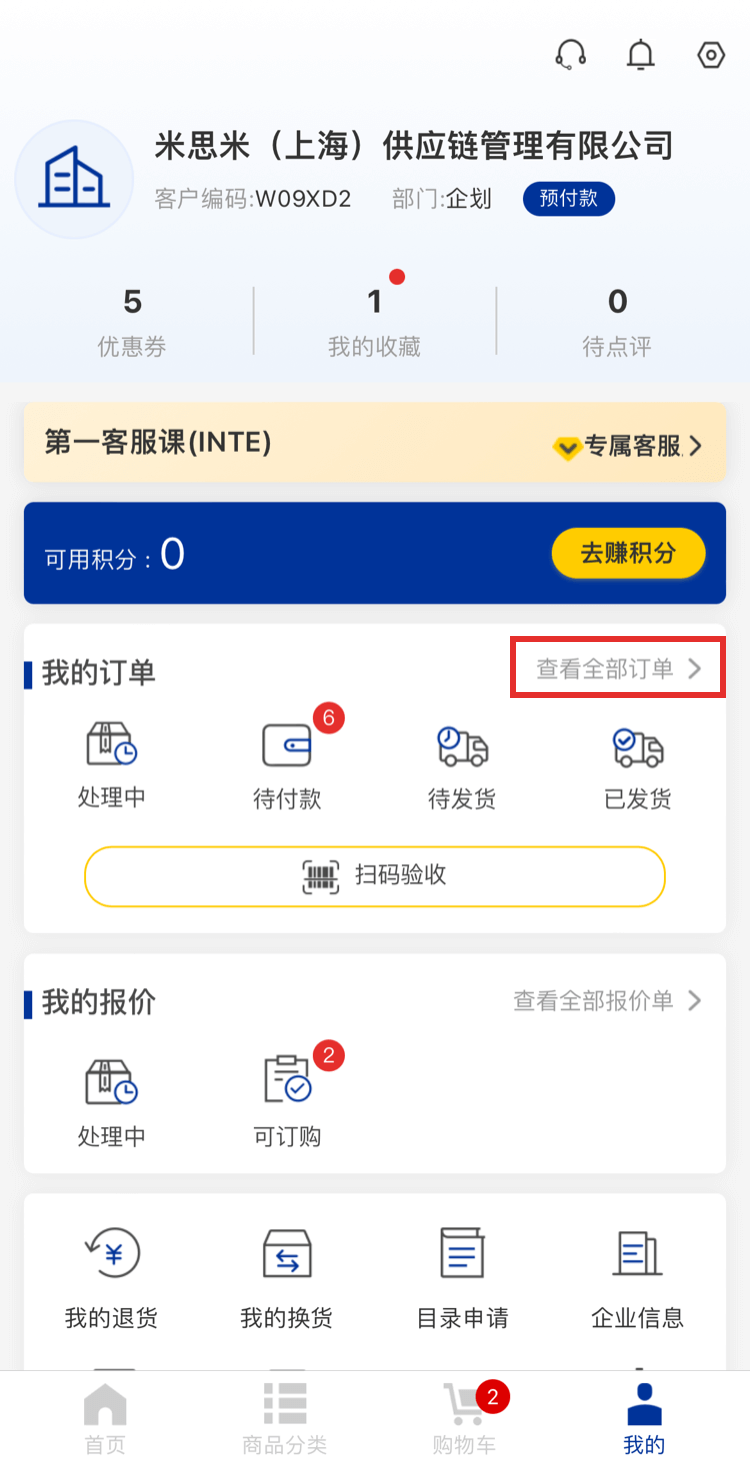 1、點(diǎn)擊【查看全部訂單】進(jìn)入我的訂單頁面。