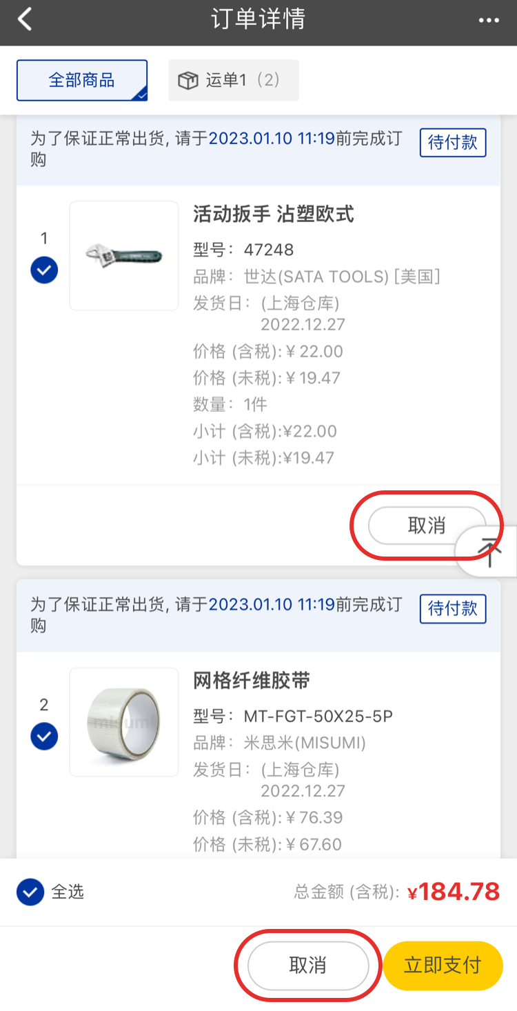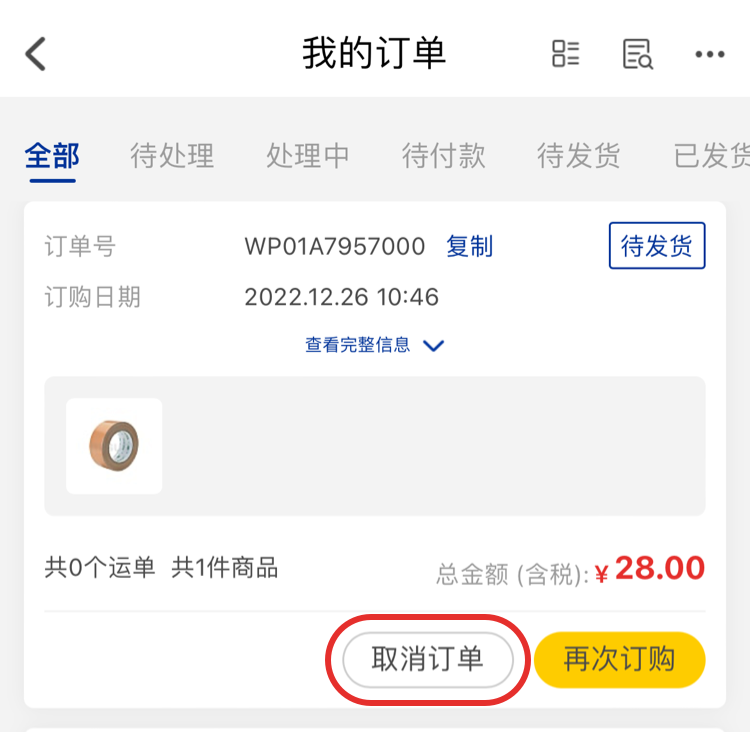 3、如果一單存在多個(gè)商品且需要取消單個(gè)商品的情況下,在【我的訂單】頁面點(diǎn)擊【查看詳情】進(jìn)入訂單詳情頁