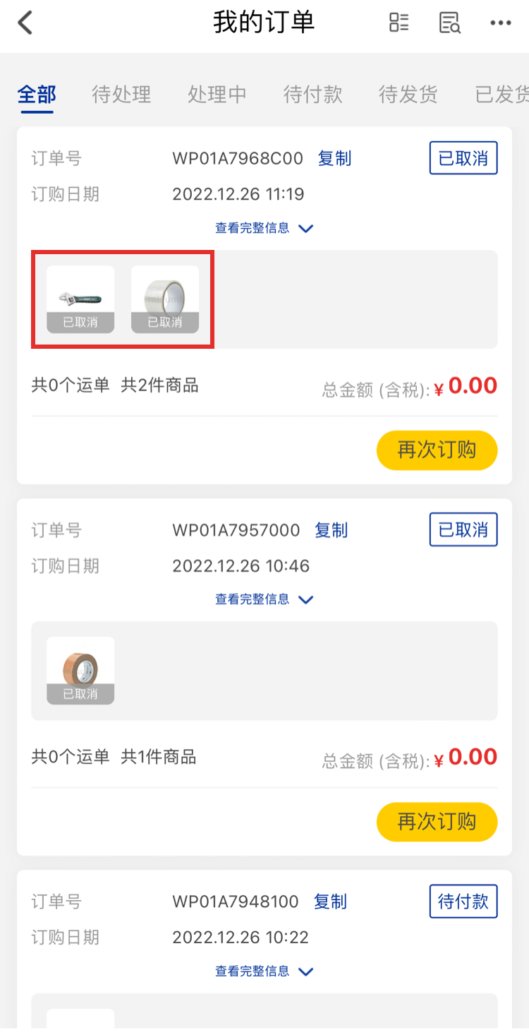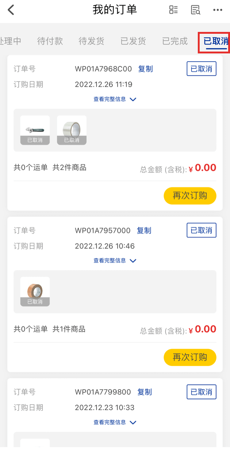 7、在【我的訂單】頁面可以查看到已取消的訂單。