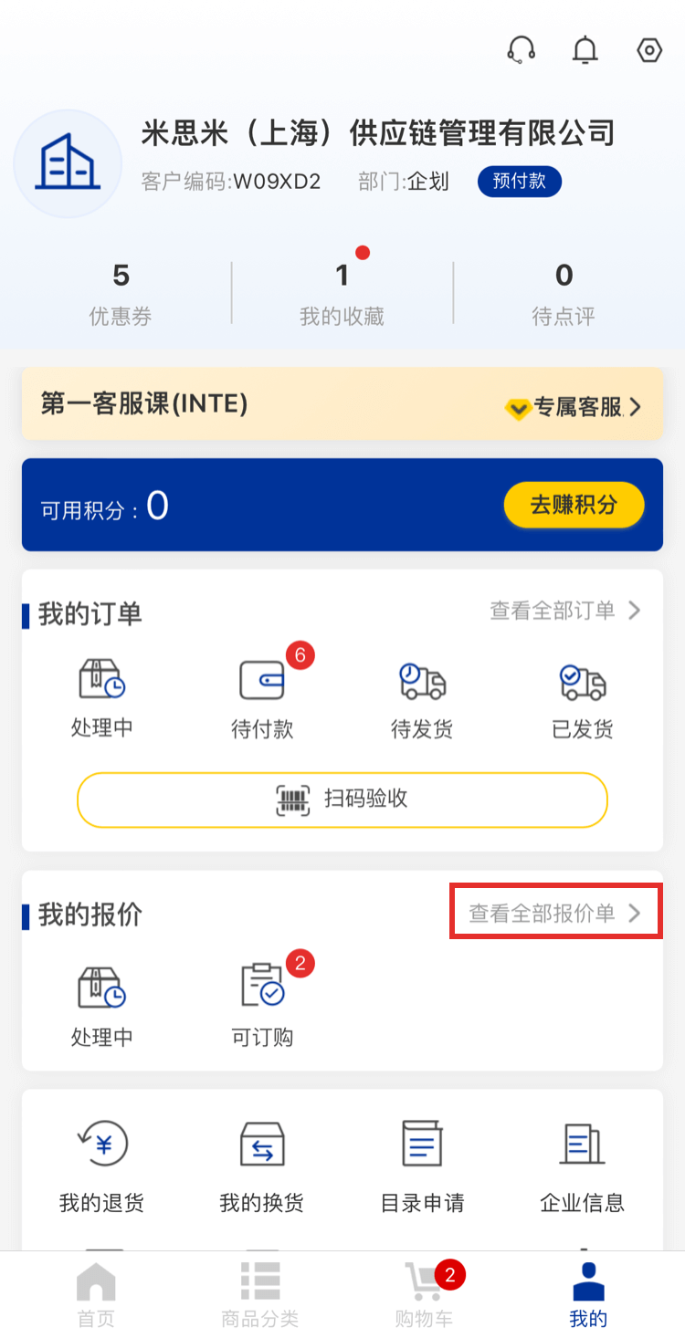 1、點(diǎn)擊進(jìn)入【我的報(bào)價(jià)】 頁面。