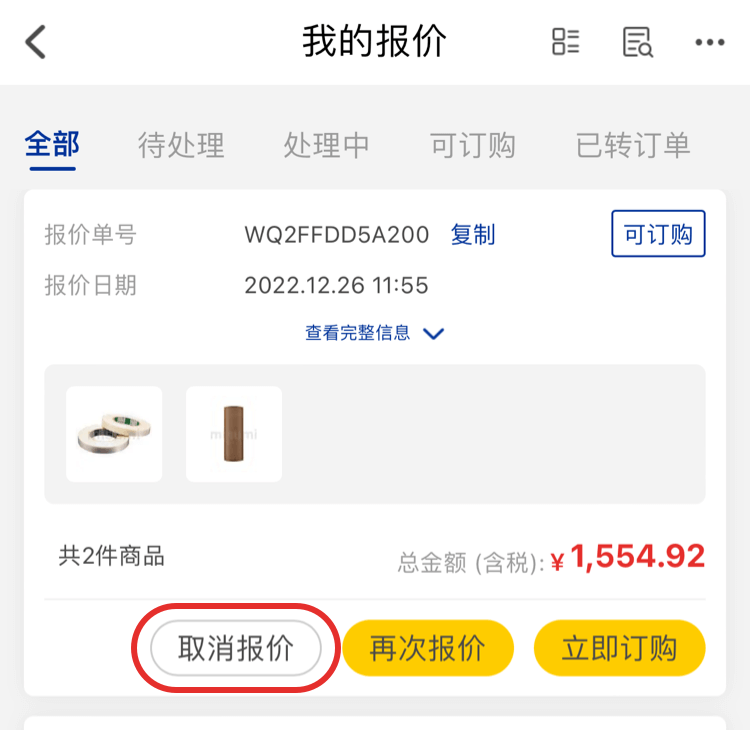 2、在【我的報(bào)價(jià)】頁面找到相應(yīng)需要取消的報(bào)價(jià)單點(diǎn)擊【取消報(bào)價(jià)】