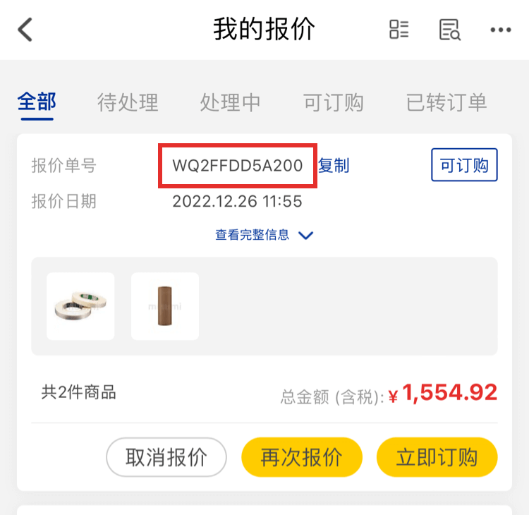 3、如果一單存在多個(gè)商品且需要取消單個(gè)報(bào)價(jià)商品的情況下,在【我的報(bào)價(jià)】頁面點(diǎn)擊【查看詳情】進(jìn)入報(bào)價(jià)詳情頁
