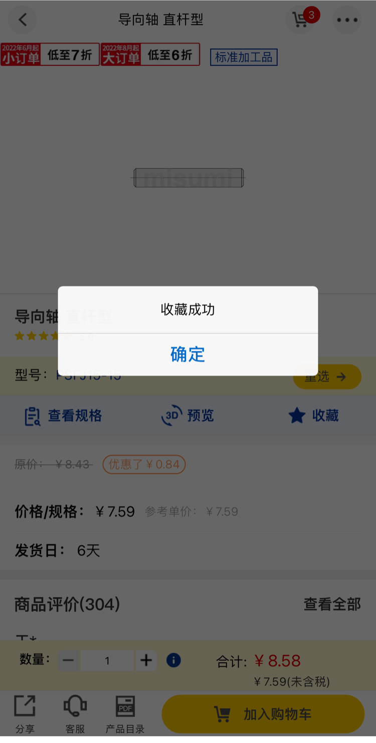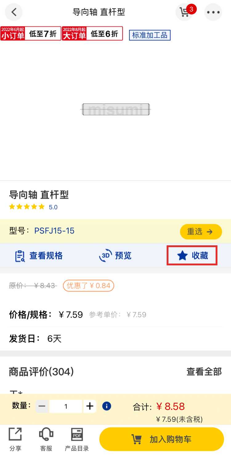 商品詳情頁面,可以將型號等商品信息收藏到我的零件清單