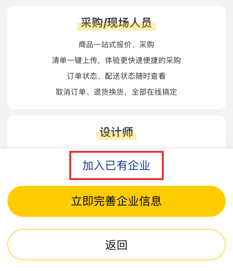 1.注冊成為米思米個(gè)人會員后,直接在完成注冊的頁面點(diǎn)擊【加入已有企業(yè)】?;蛘摺疚业摹宽撁妗炯尤肫髽I(yè)】。