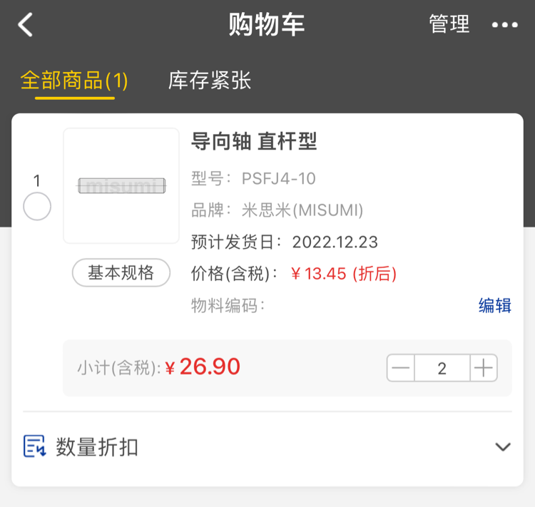 完善企業(yè)信息:您的企業(yè)未曾在米思米注冊成為企業(yè)用戶,請選擇該方式。