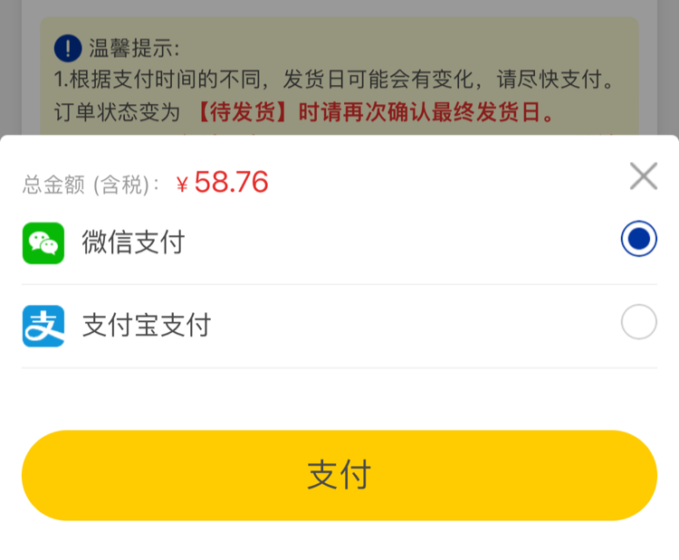 一、在訂單確認(rèn)頁面您可選擇支付方式