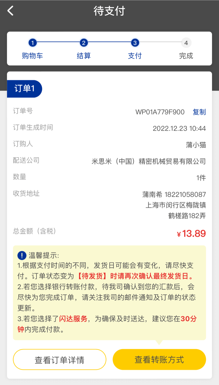訂單支付完成,可點(diǎn)擊【查看訂單詳情】,也可點(diǎn)擊【返回首頁(yè)】繼續(xù)購(gòu)物。