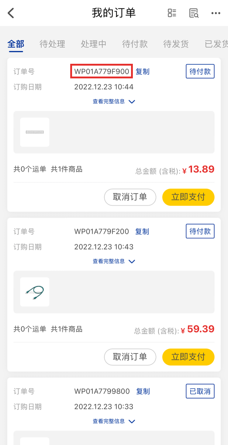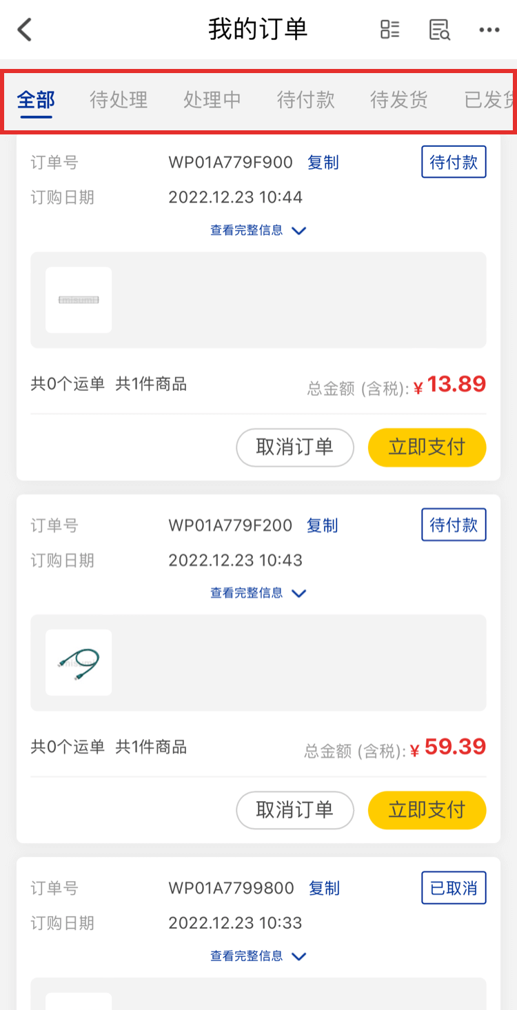 點(diǎn)擊訂單號(hào),可查看訂單詳情。