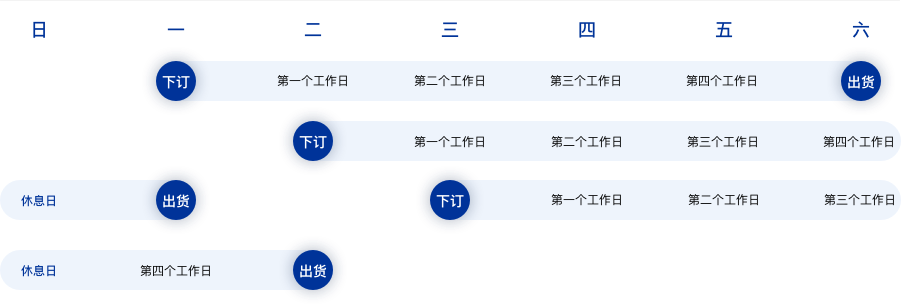 例:如下圖發(fā)貨天數(shù)為5天的商品的發(fā)貨日計算方式
